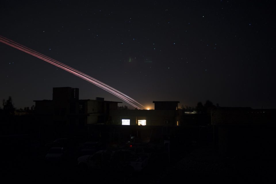 An Iraqi air force helicopter strikes a target in Fallujah, Iraq on May 29, 2016.