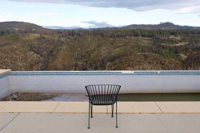 A swimming pool is all that remains of one of the houses on the eastern edge of Paradise, CA. The Camp Fire began in the hills in the east on November 8, 2018. It was the deadliest and most destructive fire in California history. During the fire, which burned for 17 days, 85 lives were lost and 18,804 buildings were destroyed.